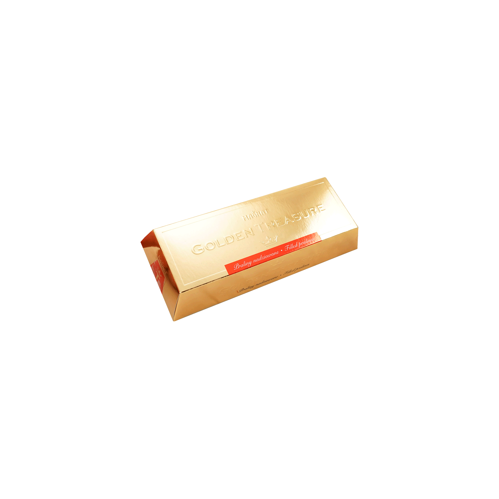 Lata con bombones de chocolate con leche y praliné avellana envueltos individualmente.