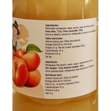 Descubre el sabor auténtico del Paraguayo, un melocotón plano cultivado con métodos tradicionales y sostenibles. Cada pieza es cuidadosamente seleccionada y envasada en almíbar para preservar su frescura y dulzura natural.