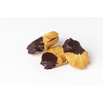INGREDIENTES: Harina de trigo, mantequilla (26%), azúcar huevos, praliné de almendra (almendra 50%, azúcar, emulgente: lecitina de girasol), y cobertura de chocolate (pasta de cacao, azúcar, manteca de cacao, emulgente: lecitina de soja, aroma natural de vainilla). Puede contener trazas de frutos de cáscara.
