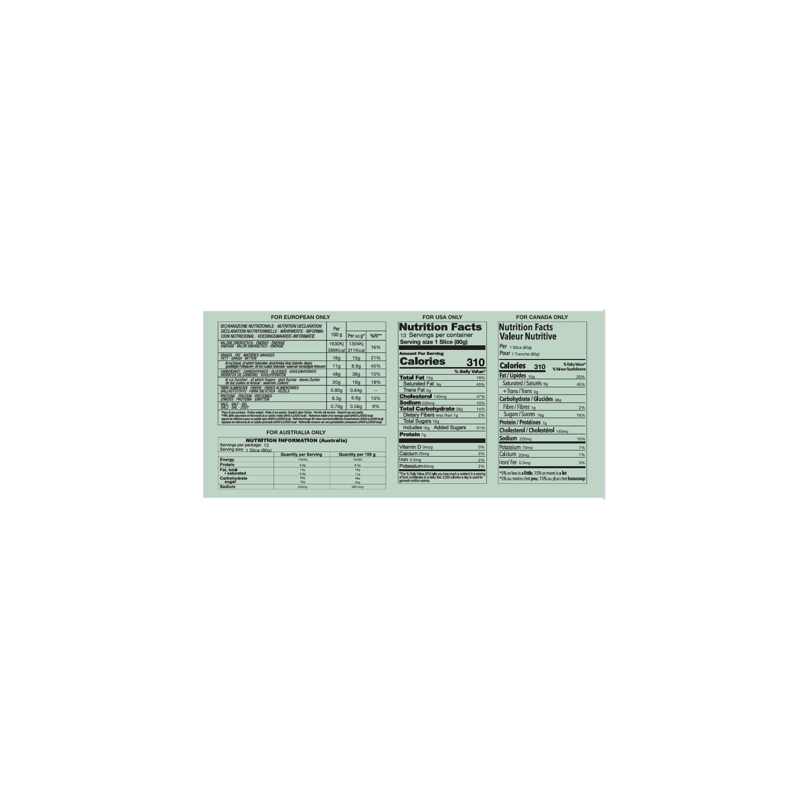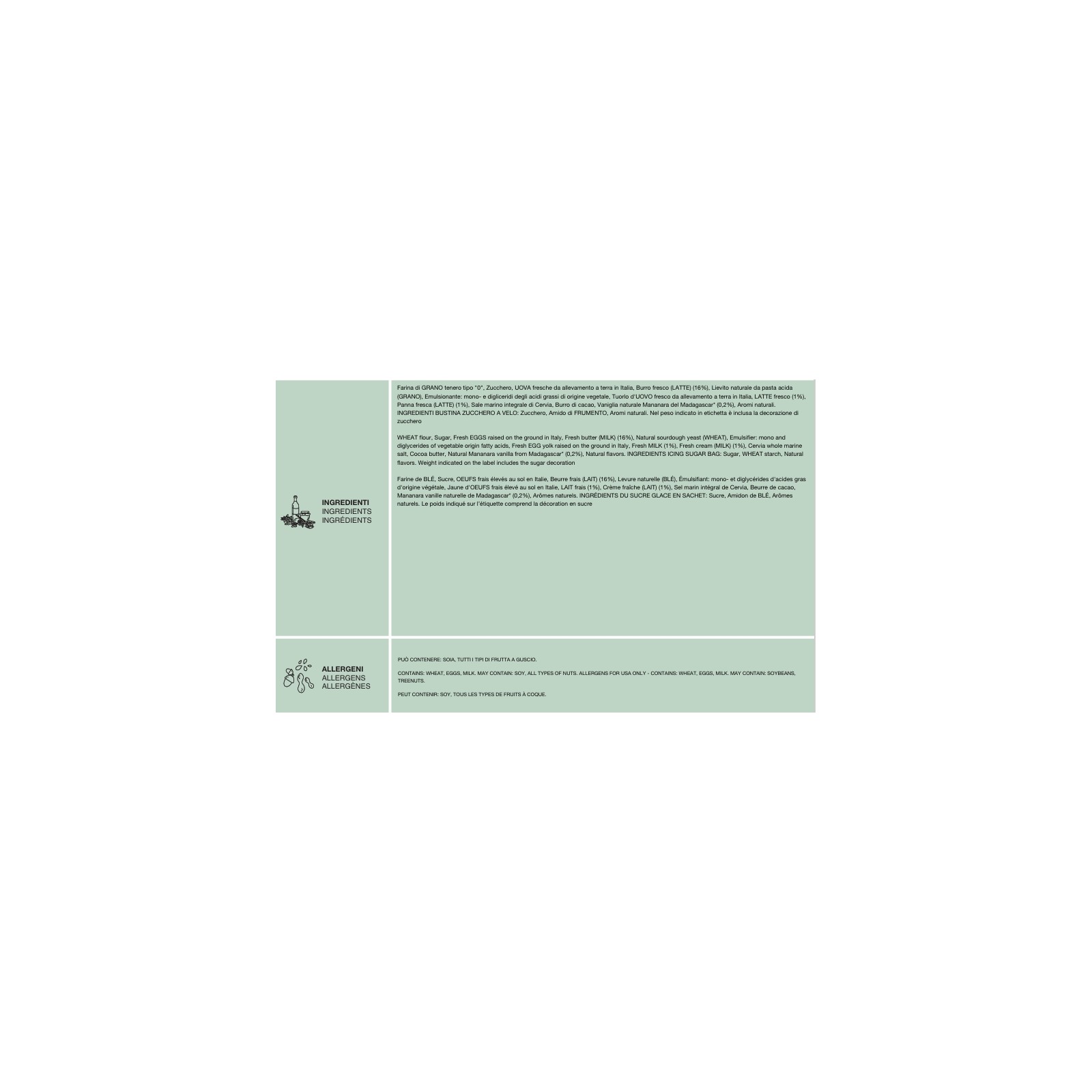 El clásico Pandoro artesanal tiene una pasta suave de color amarillo dorado, rica en mantequilla fresca de montaña y Vainilla Bourbon natural de Madagascar (*Slow Food Presidium). La levadura es natural, partiendo de una masa madre utilizamos 72 horas de paciente elaboración artesanal. El resultado es un postre muy digerible y suave, con un aroma y sabor genuino e inconfundible. Los ingredientes básicos son todos frescos: huevos de gallinas camperas en Italia, leche, nata y mantequilla de montaña. El clásico Pandoro se puede decorar, a la hora de servir, con una ligera pizca de azúcar glas, incluido en el paquete.