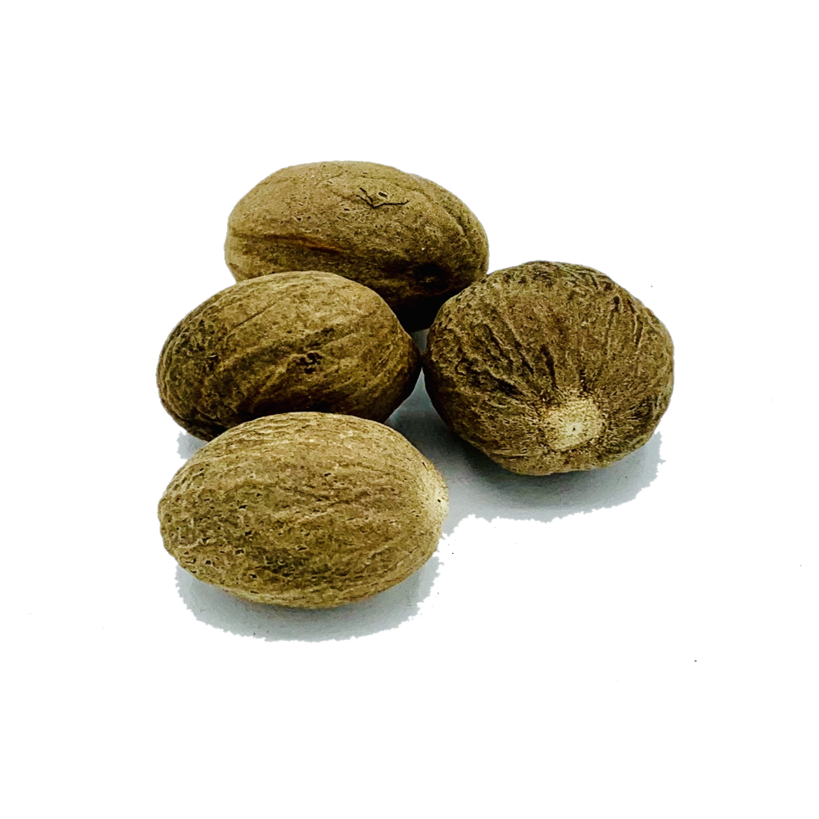 La nuez moscada en grano presenta una forma ovalada, un tamaño medio, tejido veteado duro y un color marrón pardo. Es el fruto de un árbol tropical originario de Indonesia.
