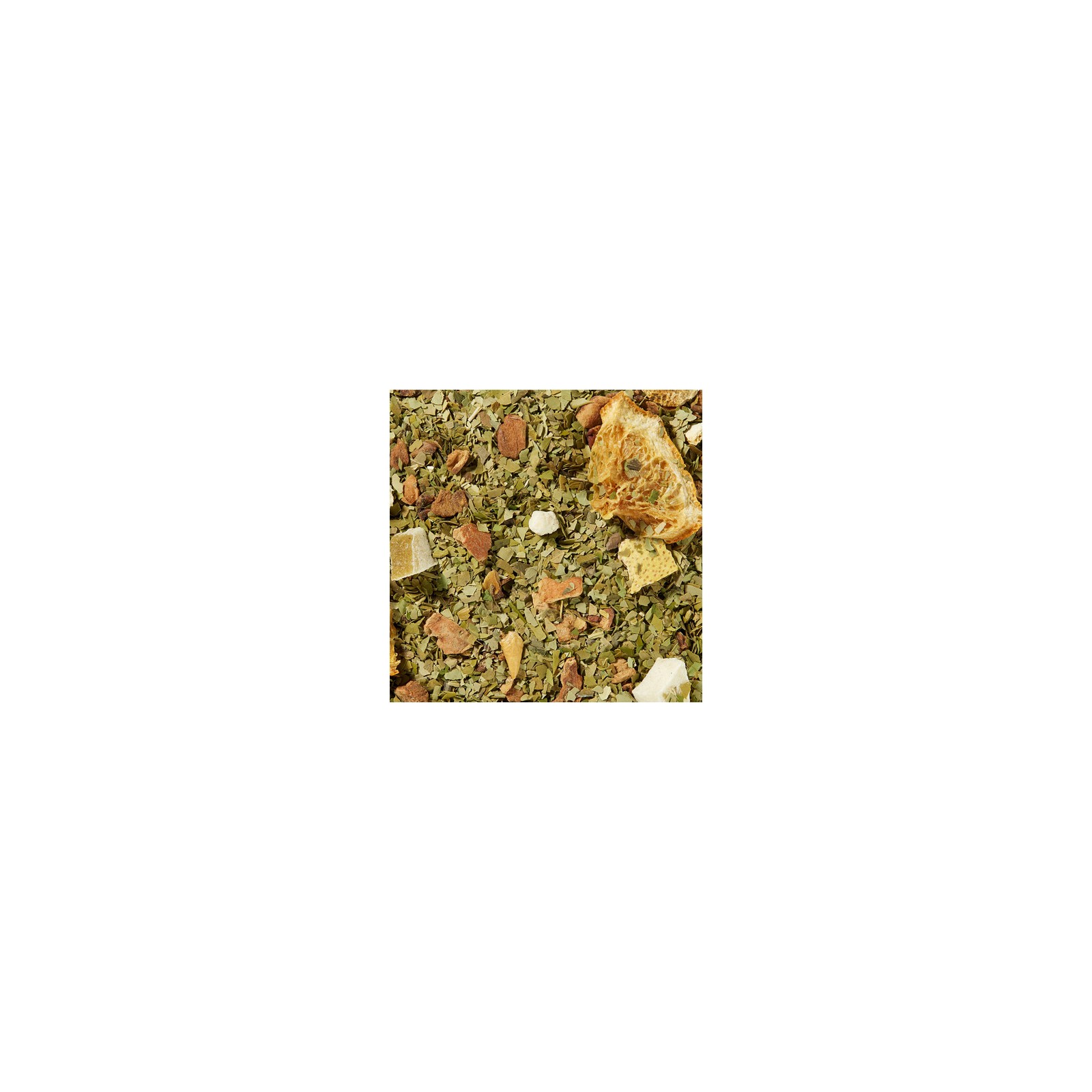 Ingredientes:     mate verde, trozos de manzana, pomelo confitado (cáscaras de pomelo, azúcar, acidulante: ácido cítrico), aromas, cáscaras de naranja, hojas de mora, cáscaras de limón