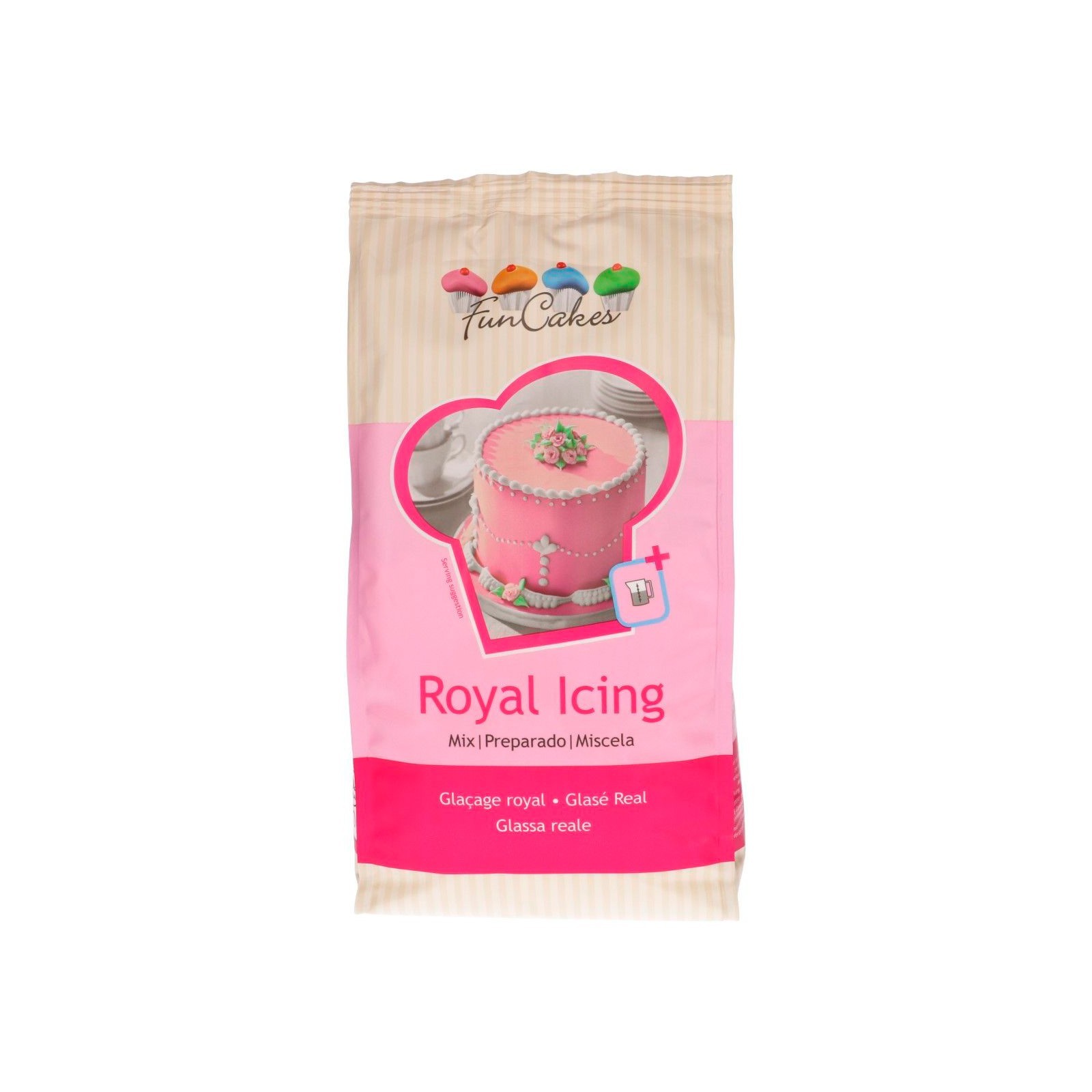 Modo de preparación: Tamizar 450 g de preparado. A continuación, mezclar con 55 ml de agua para conseguir una consistencia de glasé real sólido. Mezclar el preparado y el agua durante aprox. 7-10 minutos a velocidad baja, hasta que el glasé este blanco, no brille y presente la consistencia deseada.