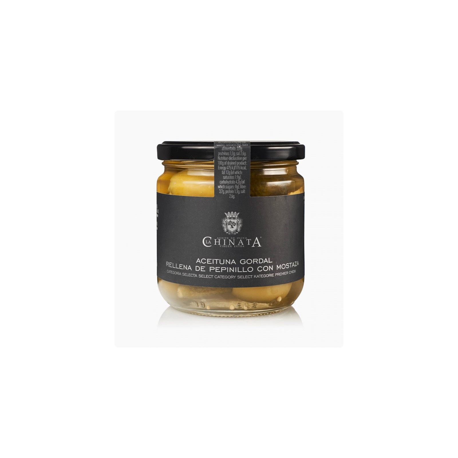 En este caso, la Aceituna Gordal rellena de Pepinillo con Mostaza La Chinata ofrece un contraste agridulce gracias a la combinación de las Aceitunas con los Pepinillos con Mostaza, una unión muy exitosa en España. Un fruto seleccionado y relleno a mano que resulta ideal como aperitivo a cualquier hora del día.
