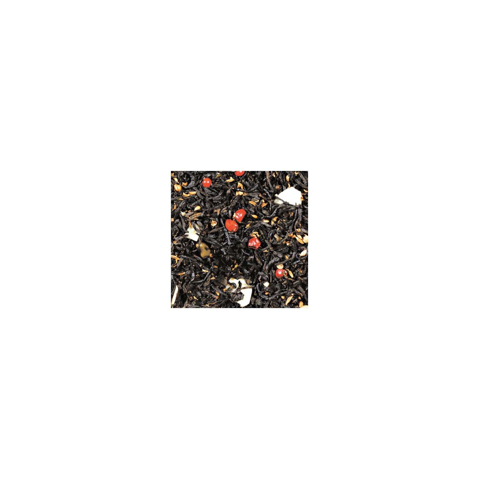 Ingredientes: Té negro Assam., pistachos, comino, trozos de almendra cilantro, pimienta rosa y aromas
